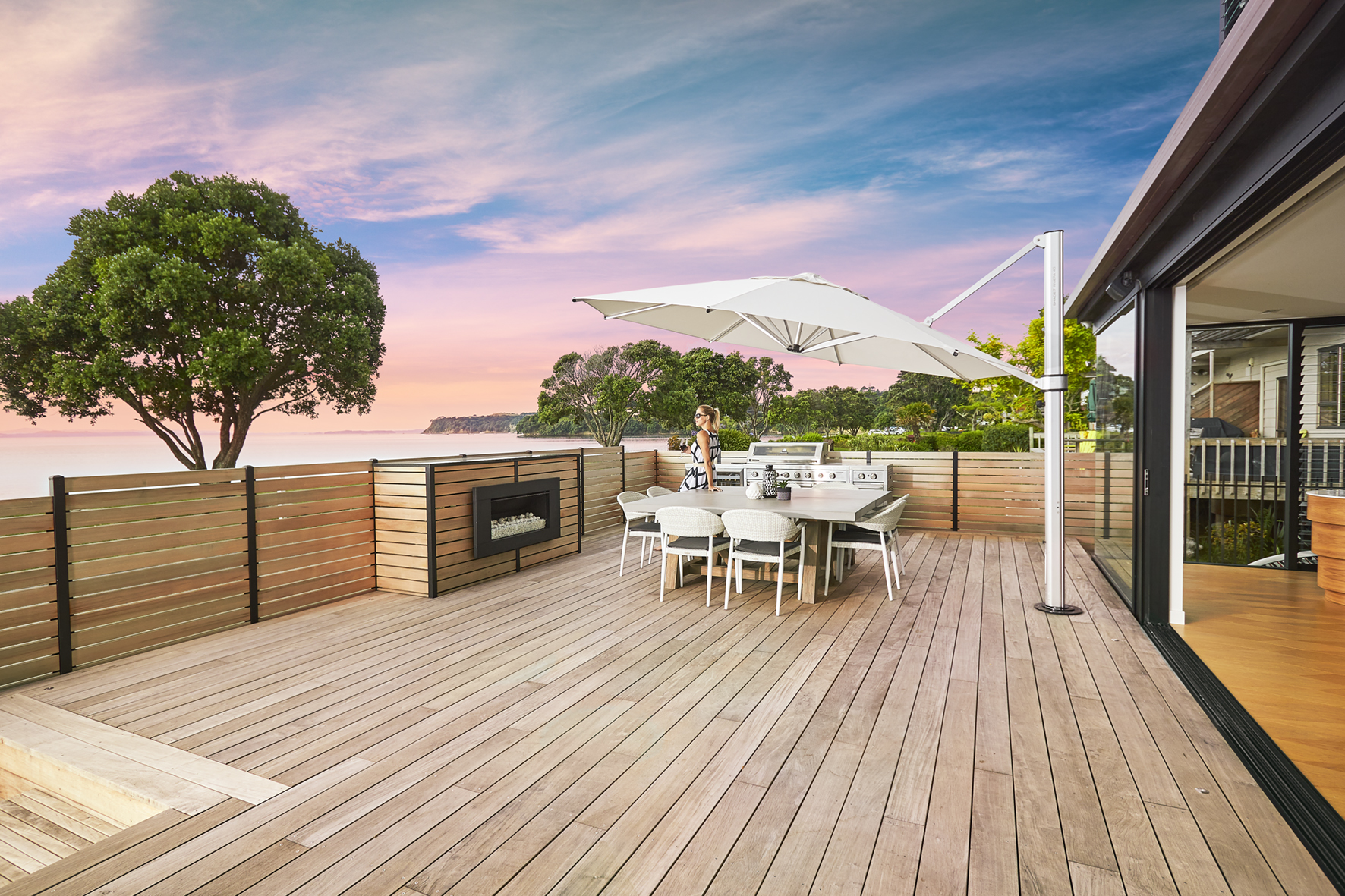 This ultra Modern Cantilever Market Umbrella by Frankford Umbrellas is the perfect selection for residential and commercial installations. Heavy gauge extruded aluminum and stainless steel parts on a marine grade corrosion resistant aluminum frame makes this cantilever market umbrella ideal for all environments. Infinity Tilt and 360 degree rotation allow a large area to be shaded throughout any sunny day.
