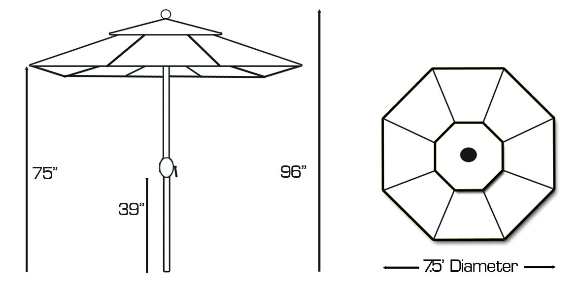7.5' Aluminum Patio Umbrella with Sunbrella Canvas and Auto Tilt Deluxe.